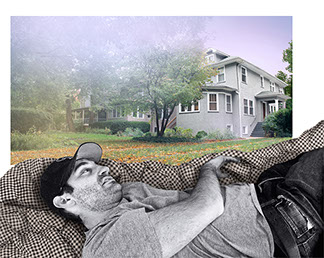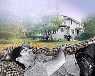 The client requested a unique composition of her family in front of their home; the design is based on Martin Mull's painting, Sanctuary. Shown above is an automated slideshow case study of this photo composition from start to finish.