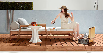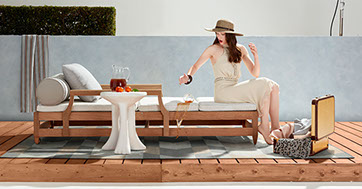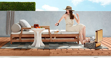 The source image was retouched and color-corrected, with the rug, background and pool in the foreground added. The woman's arm position was also changed. Shown above is an automated slideshow case study of this photo composition from start to finish.