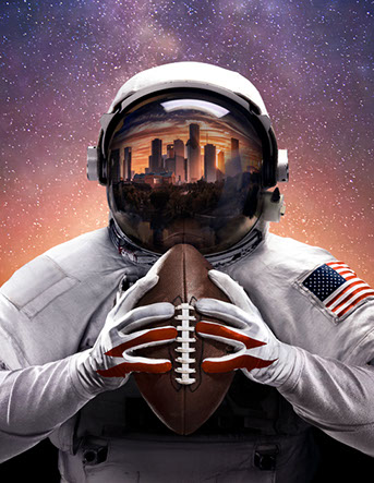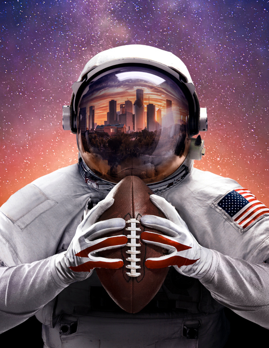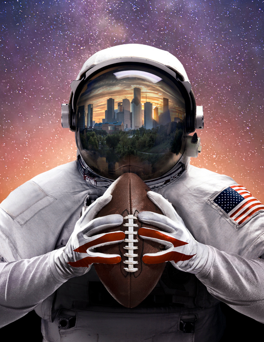Andrew teamed up with design director Hector Sanchez to create the cover image for this commemorative magazine in a coordinated effort with the NFL and NASA. Shown above is an automated slideshow case study of this photo composition from start to finish.